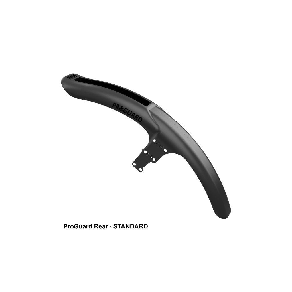 ProGuard je úžasná nová řada předních a zadních blatníků pro horská kola s kotoučovými brzdami, které nabízejí bezkonkurenční ochranu před blátem a vodou, jsou ideální pro závodníky i pro víkendové jezdce, kteří hledají tu nejlepší ochranu. Blatník ProGuard REAR se dodává ve dvou velikostech: Je vyroben z vysoce odolného recyklovatelného polypropylenu, povrchová úprava je matná černá s lesklými prvky na logu a středové linii.