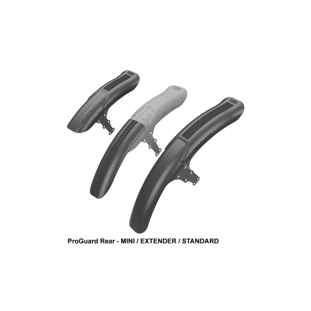 ProGuard je úžasná nová řada předních a zadních blatníků pro horská kola s kotoučovými brzdami, které nabízejí bezkonkurenční ochranu před blátem a vodou, jsou ideální pro závodníky i pro víkendové jezdce, kteří hledají tu nejlepší ochranu. Blatník ProGuard REAR se dodává ve dvou velikostech: Je vyroben z vysoce odolného recyklovatelného polypropylenu, povrchová úprava je matná černá s lesklými prvky na logu a středové linii.