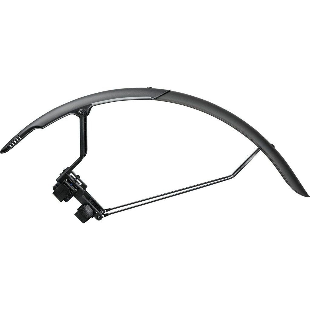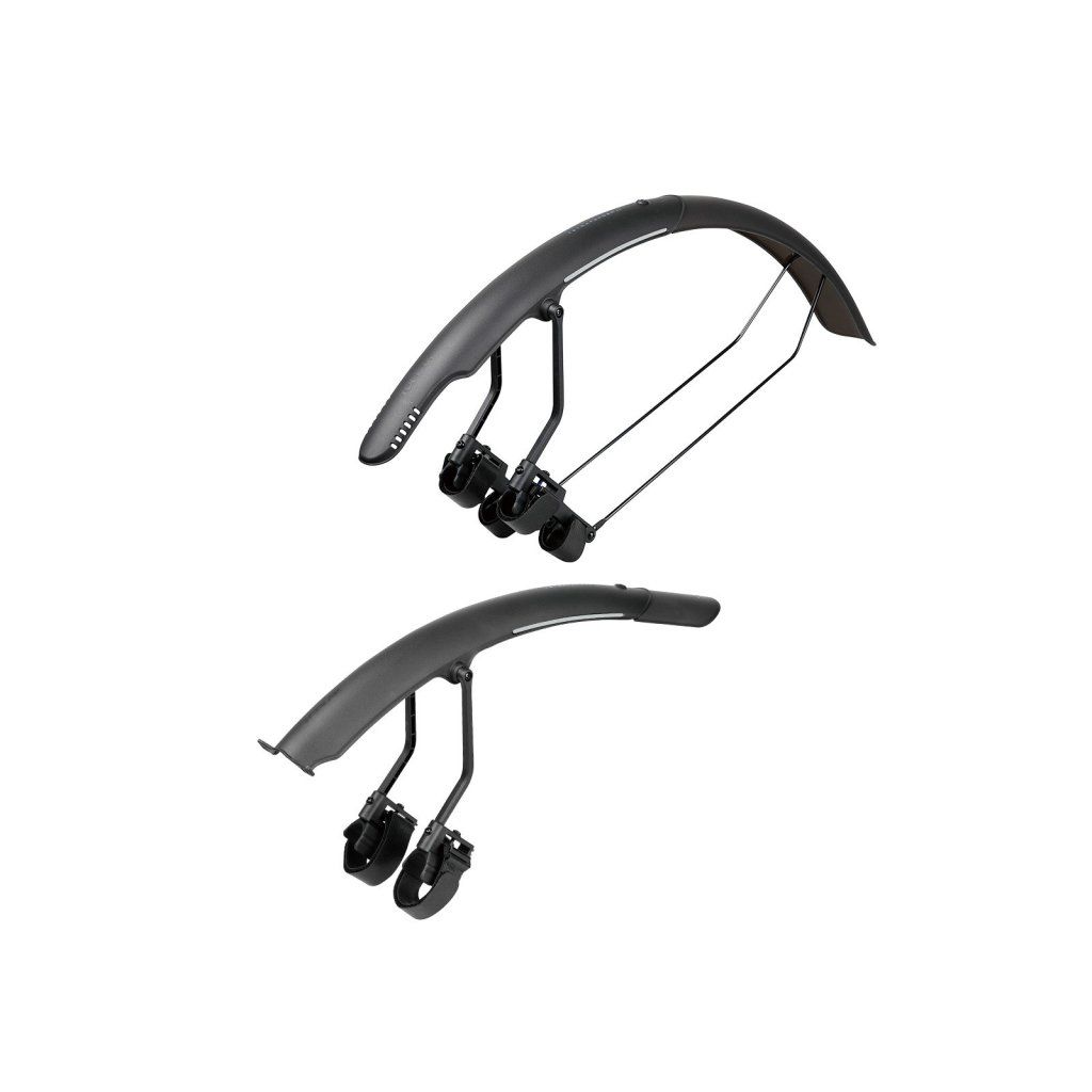 Zadní dvoubarevný blatník s rychlou, bezpečnou a jednoduchou montáží. Nastavitelné vzpěry zajišťují těsnější přilnutí k pneumatice a vynikající ochranu před blátem, zatímco vysoce leštěná spodní strana pomáhá předcházet usazování nečistot a usnadňuje čištění. Přiložené reflexní nálepky 3M zajišťují bezpečnost v noci.