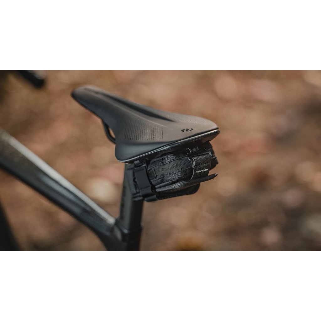 Ultrakompaktní podsedlová brašna ukrytá pod sedlem pomocí pásku se suchým zipem. Systém Rail Wing umožňuje rychlý přístup k nezbytnostem bez nutnosti sundávat celou brašnu.
