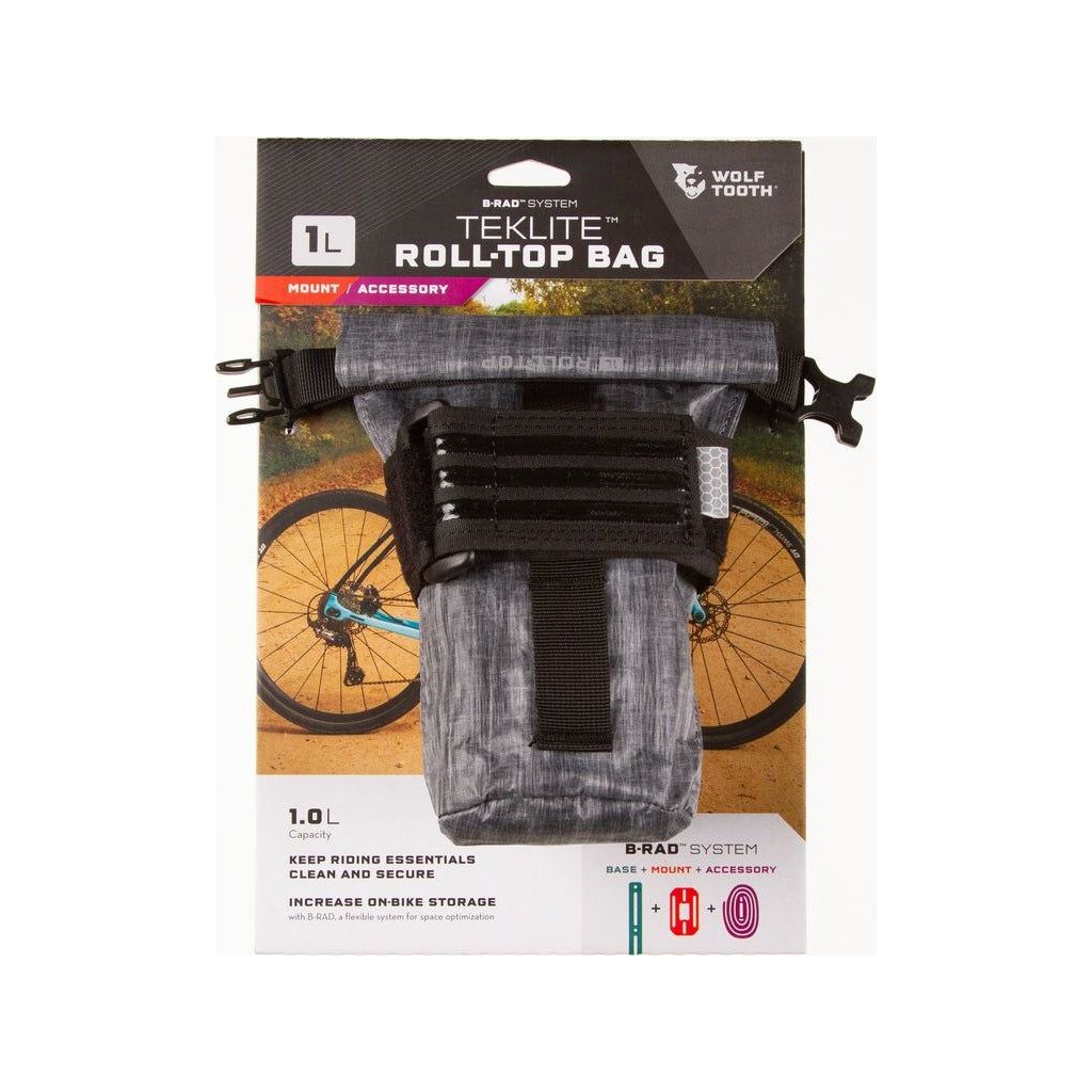 B-RAD TekLite Roll-Top Bag je prémiová, lehká a flexibilní brašnička, která ochrání vaše nezbytnosti, které berete s sebou na kolo před přírodními živly. Má stejný profil jako původní B-RAD Roll-Top Bag, ale používá nový materiál TekLite, který je vyroben z vrstvených, pevných, odolných a lehkých vláken. Brašna jsou dostatečně velká, aby pojmula sbalenou větrovku nebo jídlo na celý den v sedle, ale zároveň dostatečně elegantní, aby při jízdě nepřekážela. Rolovací otvor umožňuje rychlý přístup, zatímco pásek se suchým zipem umožňuje snadné vyjmutí a přemístění. Lze ji připevnit pod sedlo, k rámu, dát do košíku na láhev nebo namontovat na jakoukoli základnu B-RAD.