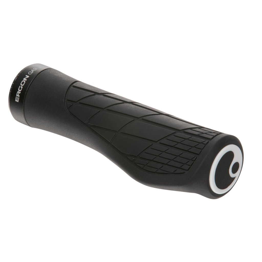 Komfortní MTB gripy, které kombinují špičkový tvar s ergonomickým křídlem. Propracovaný tvar gripu pohlcuje nárazy a struktura vzoru zajišťuje skvělou přilnavost. Super měkký a UV stabilní materiál gripu je vyroben v Německu exkluzivně pro Ergon. Materiál a ergonomie gripu napomáhají k minimalizování tlaku, který při jízdě působí na ruce a páteř. Odlehčená objímka umožňuje i použití na karbonových řidítkách. Výměnné koncovky gripů.