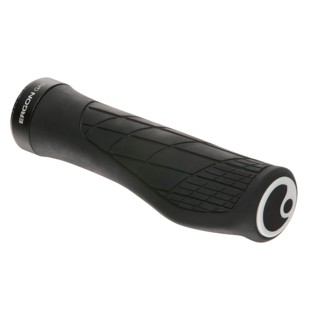 Komfortní MTB gripy, které kombinují špičkový tvar s ergonomickým křídlem. Propracovaný tvar gripu pohlcuje nárazy a struktura vzoru zajišťuje skvělou přilnavost. Super měkký a UV stabilní materiál gripu je vyroben v Německu exkluzivně pro Ergon. Materiál a ergonomie gripu napomáhají k minimalizování tlaku, který při jízdě působí na ruce a páteř. Odlehčená objímka umožňuje i použití na karbonových řidítkách. Výměnné koncovky gripů.