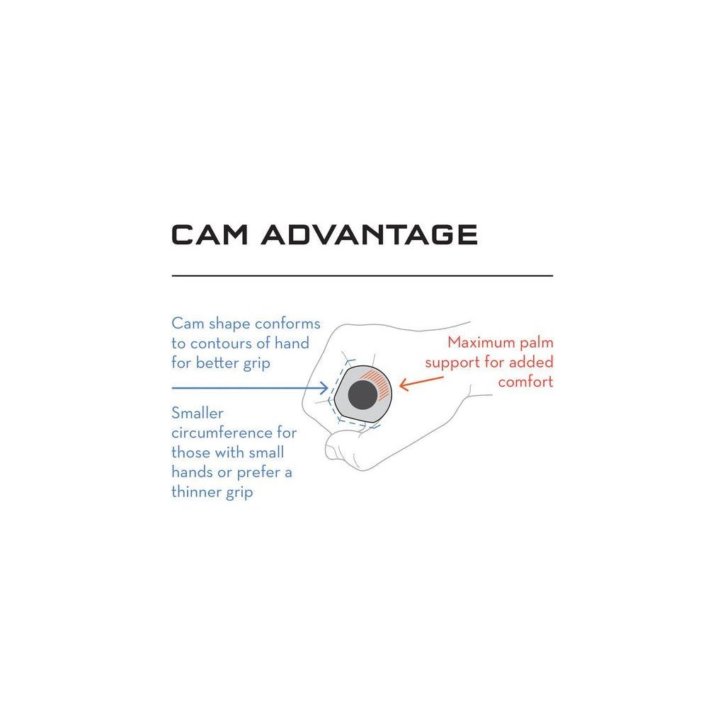 - Ergonomický tvar snižuje obvod ve srovnání s nefasetovými rukojeťmi a poskytuje polstrování a pohodlí pouze tam, kde to potřebujete