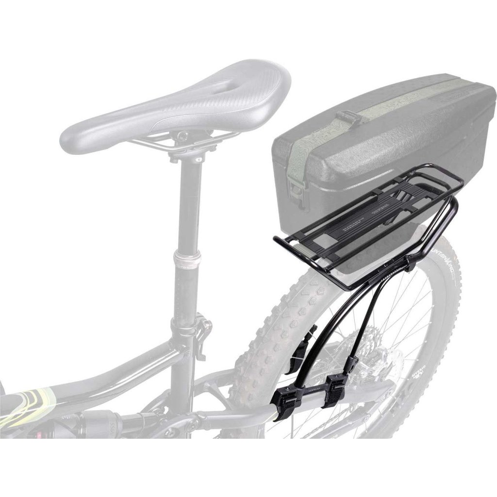 Perfektní prostorný nosič se systémem quick-mount ideální pro využití na celoodpružených MTB nebo na rámech bez montážních otvorů. Tento univerzální zadní nosič je vybaven inovativní horní deskou, která se nastavuje nezávisle na úhlu rámových trubek. Integrovaný systém QuickTrack® umožňuje snadnou manipulaci s brašnami Topeak TrunkBags. Inovativní systém upevnění s popruhy na suchý zip se pevně zaklesne, aby se náklad udržoval stabilní a zároveň umožňuje montáž na širokou škálu kol. Nosič je také kompatibilní s brašnami se systémy KLICKfix® / RackTime® Snapit nebo Vario.