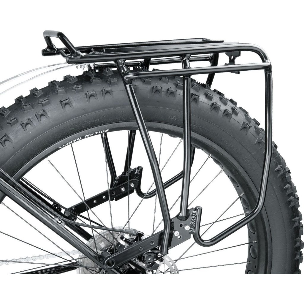 Tento univerzální hliníkový zadní nosič je určen výhradně pro kola Fat Bikes s kotoučovými brzdami. Nohy nosiče jsou nastavitelné tak, aby vyhovovaly většině kol Fat Bikes s 24" a 26" koly. Integrovaná boční tyč poskytuje nižší bod pro uchycení brašen, což umožňuje více prostoru pro náklad na horní straně nosiče. Deska MTX QuickTrack® je kompatibilní s jakýmkoli batohem Topeak MTX TrunkBag, zadním košíkem MTX a většinou dalších nosičů a brašen na trhu. Není kompatibilní s asymetrickou konstrukcí zadní stavby rámů tlustých kol.