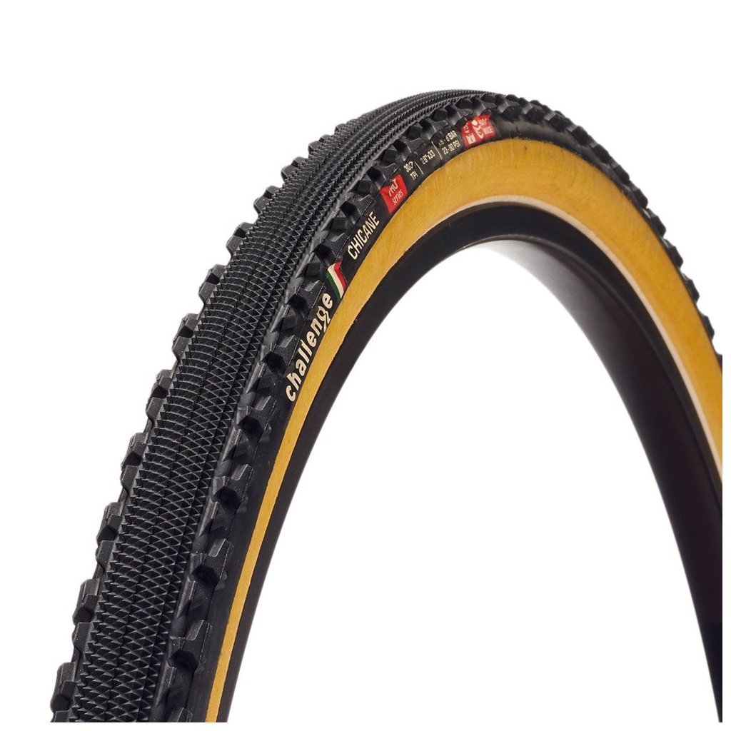 Špičkový ručně vyráběný lepený závodní cyklokrosový plášť pro profesionální použití na bázi přírodního kaučuku = nízký valivý odpor a výborná adheze. Chicane plášť je rychlý, ale spolehlivý plášť dávající oporu ve zhoršený podmínkách jako např. hardpackingu, mokré trávě nebo zimních podmínkách.