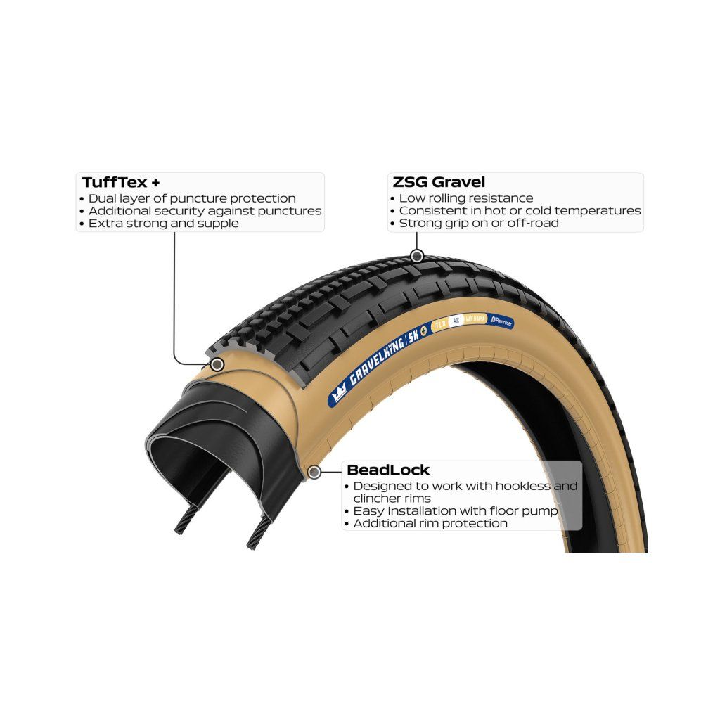 Nová verze pláště GravelKing SK + ve svém nejodolnějším provedení z řady GravelKing SK je ideální pro pohyb v nejnáročnějším terénu. Agresivnější vzorek, který je navržený pro ježdění v těžších podmínkách, na nezpevněných cestách a nebojí se ani bláta. Ideální volba, když nechcete řešit zda je sucho, mokro, či kterou cestou se vydat.