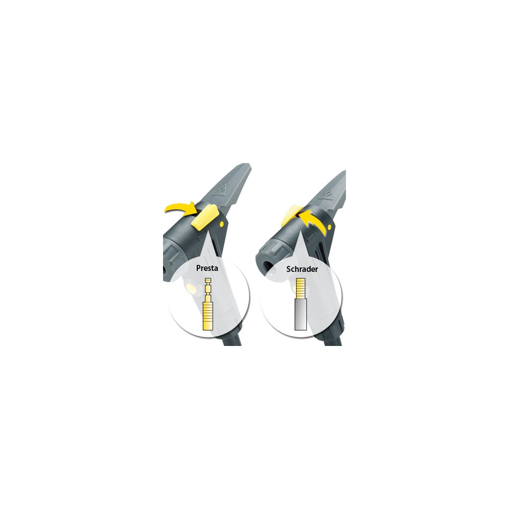 SmartHead™ s tlačítkem pro upouštění umožňuje precizní nastavení tlaku. Stabilní trojnohá základna s ocelovým tělem pro snadné huštění až do 200 psi / 14 bar. Skvěle čitelný manometr pro jednoduché dosažení požadovaného tlaku. Extra dlouhá 120 cm hadička pro snadné připojení k přednímu i zadnímu kolu i pokud je kolo umístěno ve stojanu.