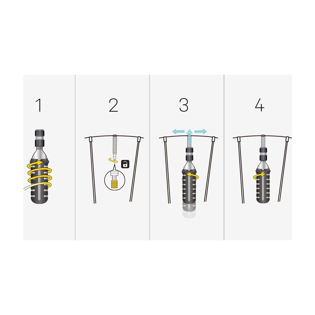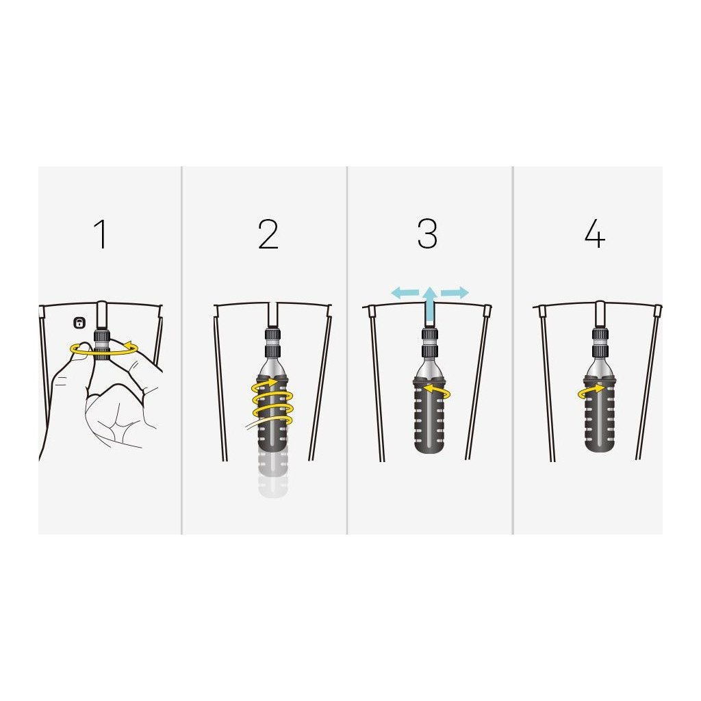 Extrémně kompaktní, lehká a snadno použitelná CO2 hustilka s 16g kartuší. Precizně CNC obráběná hliníková hustilka je vhodná pro galuskové i auto ventilky a pracuje se závitovými 16g nebo 25g kartušemi. Stačí pevně zašroubovat kartuši a poté našroubovat hlavici na ventil, odšroubovat kartuši a během několika sekund vypustit veškerý plyn z kartuše CO2.