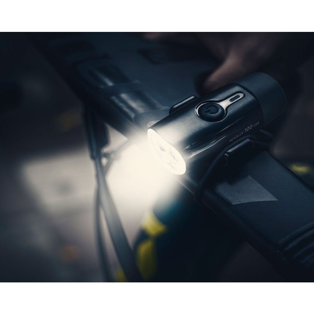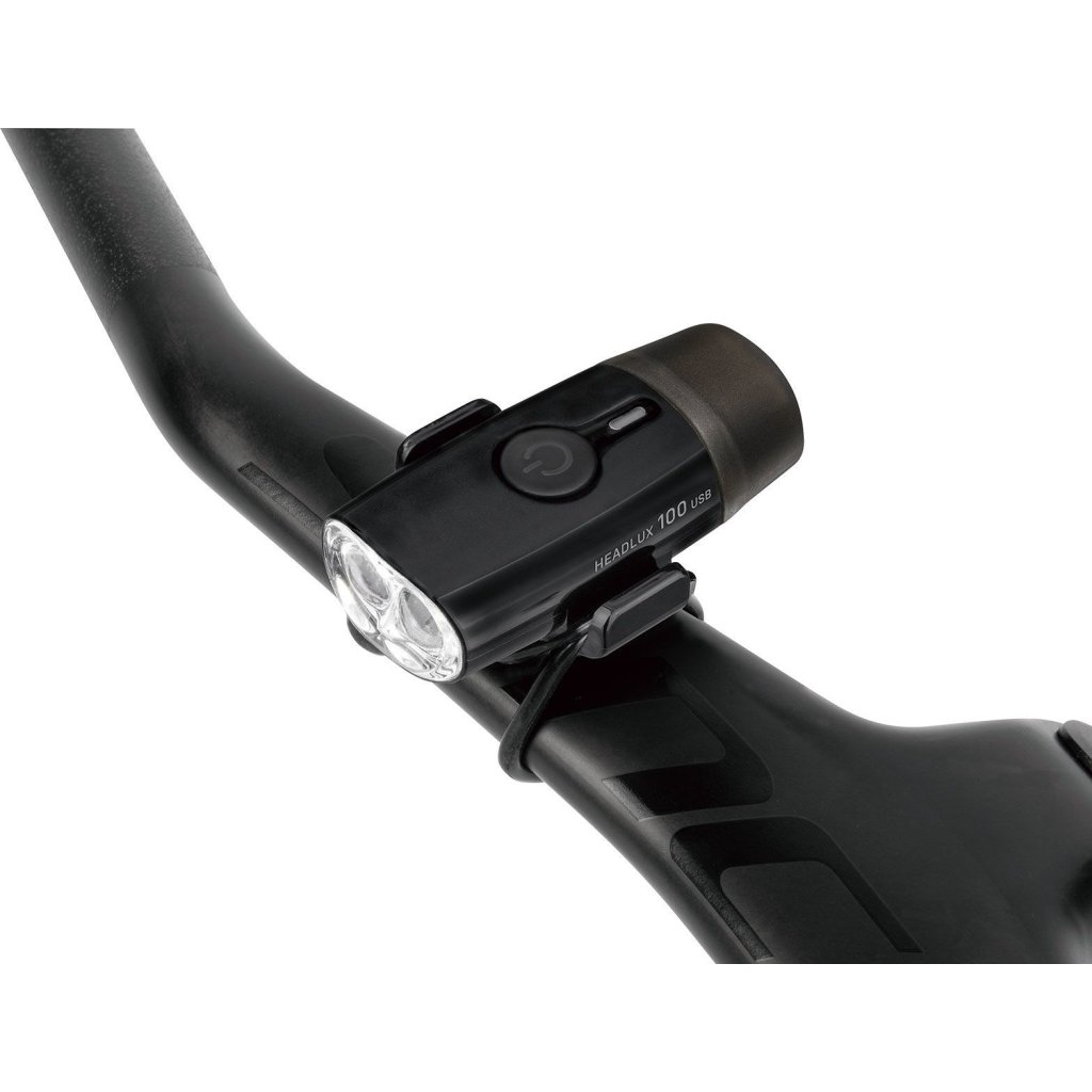 Univerzální přední světlo na helmu nebo řidítka. Světlo HeadLux 100 USB je vybaveno pohodlným nabíjením bez kabelu s přímým připojením do USB portu. Dvě jasné 0,5 W bílé LED diody poskytují až 100 lumenů se třemi světelnými režimy. Montáž a demontáž bez použití nářadí je zajištěna pomocí jednoho silikonového pásku. Voděodolnost IPX6 zajistí dokonalou ochranu proti dešti.