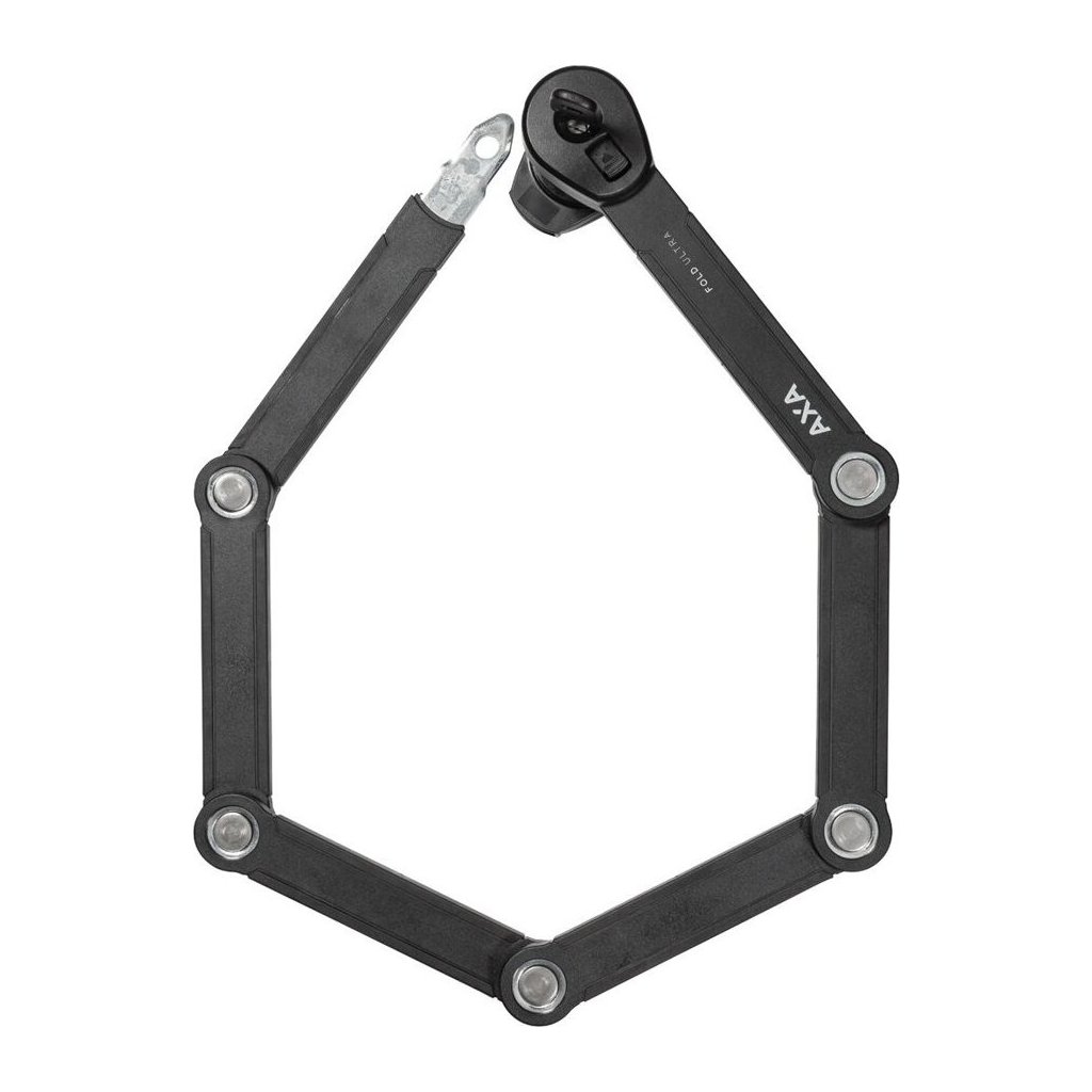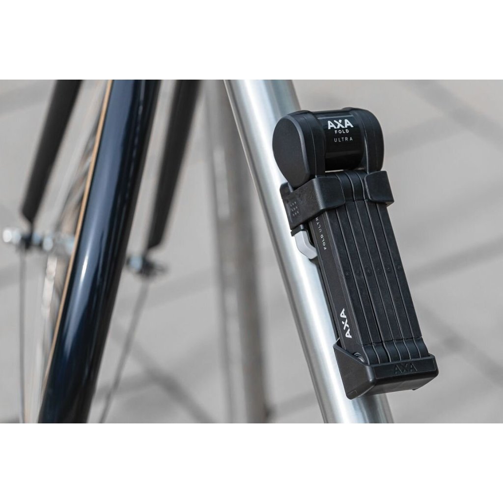 Odolný skládací zámek z tvrzené oceli vhodný pro uzamčení drahých kol a elektrokol. Ocelové pouto má průměr 8 mm a je dlouhé 90 cm. Zámek lze jednoduše připevnit k rámu pomocí speciálního držáku do montážních bodů pro košík na láhev nebo pomocí stahovacích pásků.