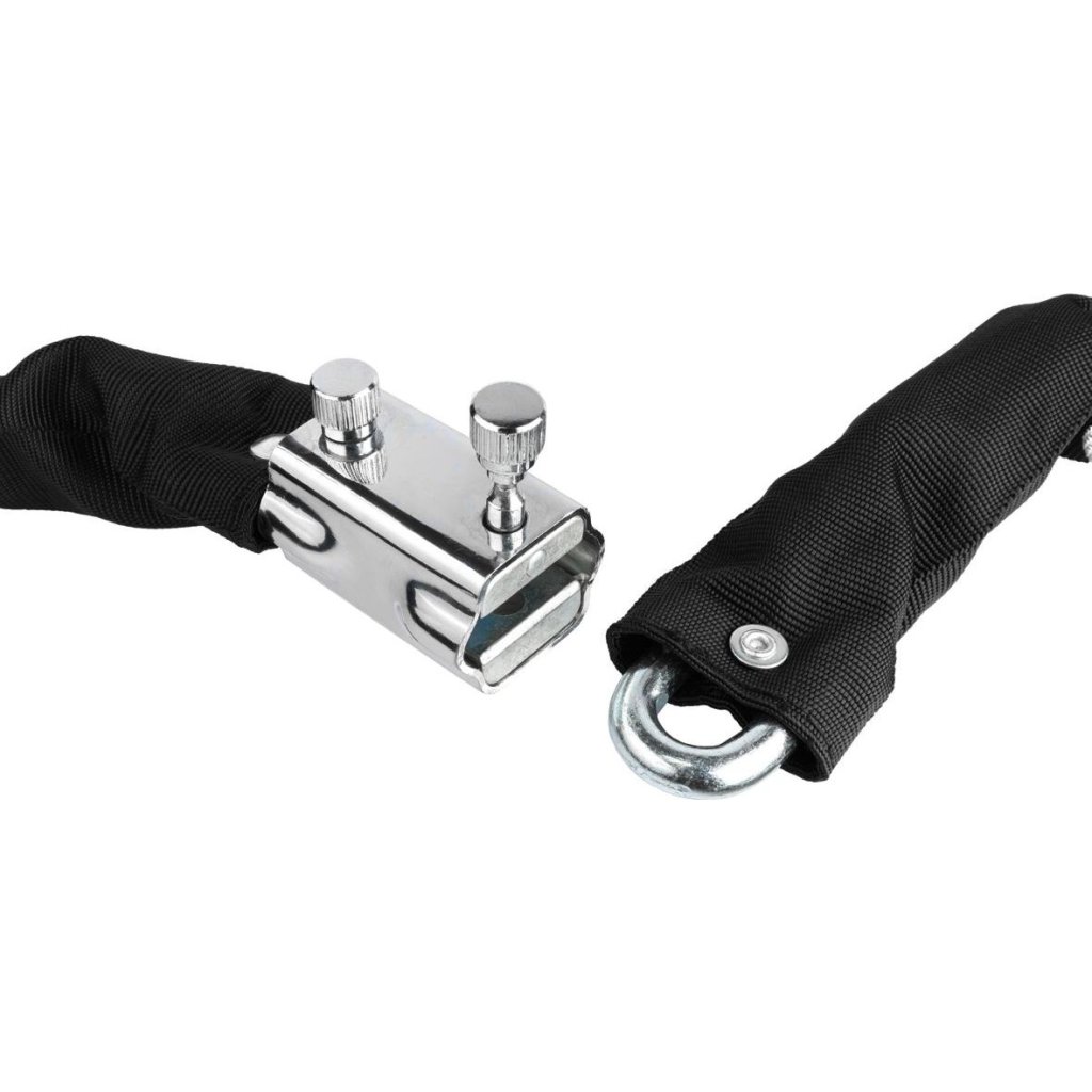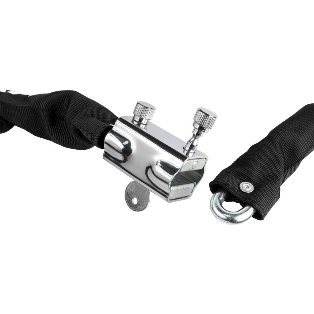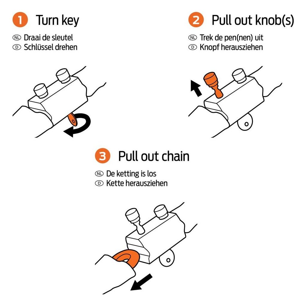 Řetěz AXA Hawk je kvalitní řetězový zámek. Řetěz je dlouhý 100 cm a průměr třmenů je 8 mm. Dodává se s 3 klíči a nemá servisní klíč. Černé pouzdro chrání vaše kolo před poškrábáním. Zámek otevřete klíčem, poté můžete vytáhnout kliku (kliky) a vytáhnout řetěz.