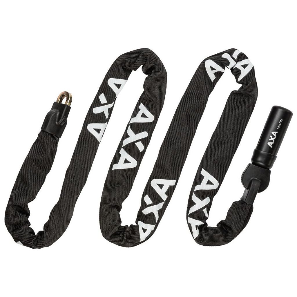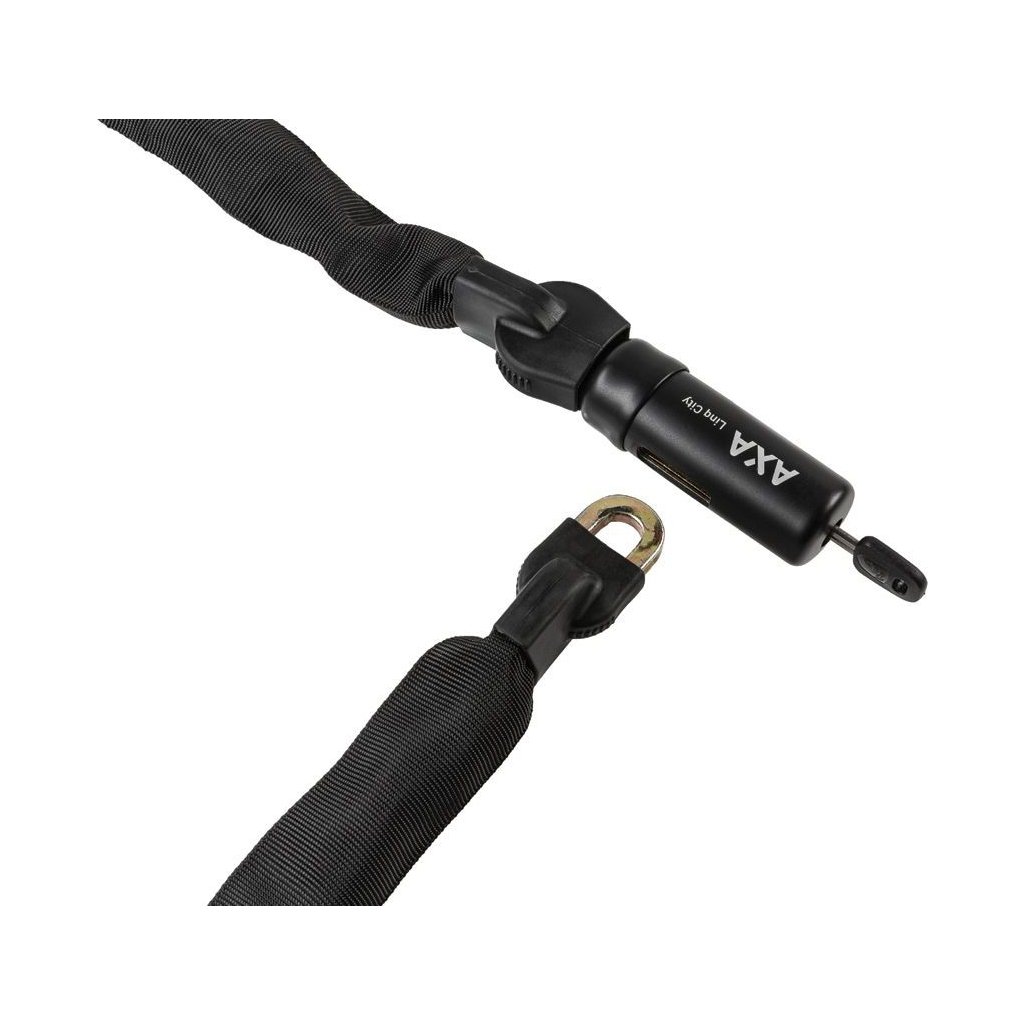 Zámek AXA Linq City 180 je mimořádně pevný, protože články pokračují do uzávěru. S délkou 180 cm je ideálním zámkem pro upevnění nákladního kola k pevnému světu. Díky symetrickému klíči nezáleží na tom, jakým způsobem je klíč zasunut do zámku. Poslední článek řetězu je v zámku upevněn "mrtvým bodem" pro mimořádně pevné spojení. Pokud se stane, že jste ztratili klíč od kola, pak to není žádný problém. Online služba klíčů AXA vám nabízí možnost kdykoli si objednat náhradní klíč. Zámek AXA Linq je vybaven černým pouzdrem, které chrání kolo před poškrábáním.