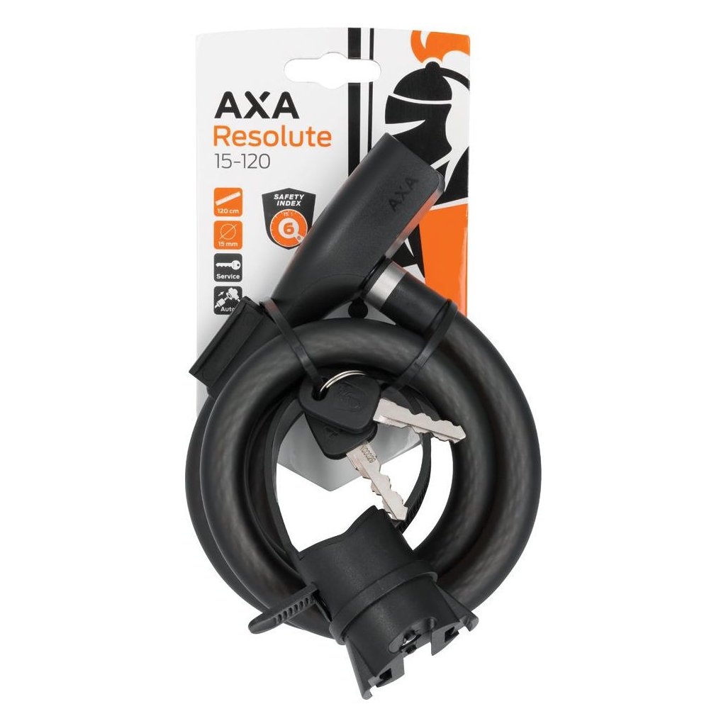 Klasický kabelový zámek vhodný pro krátkodobé uzamčení nebo jako dodatečná ochrana. Zamykací mechanismus se jednoduše zaklapne bez nutnosti otáčení klíčem. Zámek lze uchytit do rámového držáku. Klíče Resolute jsou symetrické, takže můžete zámek otevřít z libovolné polohy. Objednávání náhradního klíče je velmi snadné díky mezinárodní online službě AXA online. Zámky AXA Resolute jsou snadno rozpoznatelné díky sofistikovaným detailům z nerezové oceli a luxusní matné povrchové úpravě krytu kabelu. Zamykací mechanismus je chráněn před vlhkostí a nečistotami pomocí automatického krytu klíče. Tento kabelový zámek je dlouhý 120 cm a má průměr 15 mm.