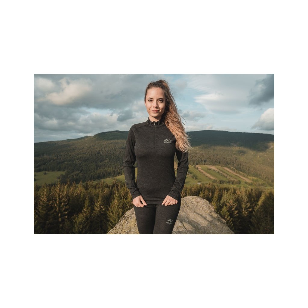 Dámský rolák se zipem ke krku z naší kolekce Merino termoprádla je skvělý funkční kousek do všech podmínek. Využiješ ho celoročně pro běžné každodenní nošení i na různé outdoorové aktivity v přírodě. Merino je přírodní termo materiál vyrobený z ovčí vlny. Je vhodný i pro alergiky a má spoustu skvělých vlastností. Udržuje tělesnou teplotu. V zimě zahřeje, v létě mírně zchladí. Je perfektně prodyšný. Skvěle odvádí vlhkost od těla, přičemž díky struktuře vlákna nemění izolační vlastnosti, takže ani vlhké nestudí. Přirozená antibakteriální vlastnost eliminuje zápach.