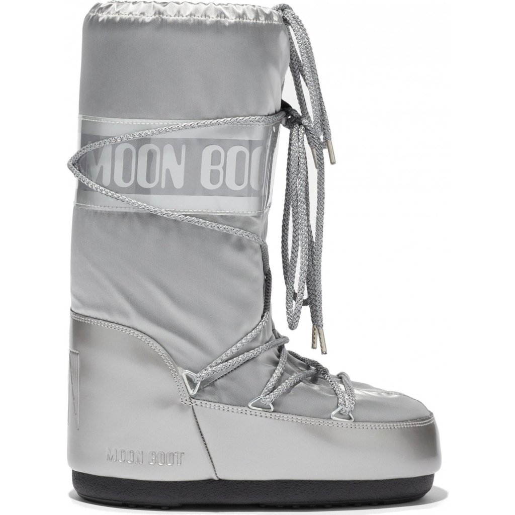 Dámské boty Moon Boot vycházejí z inspirace expedicí Apollo, nabízejí elegantní vzhled s lesklým stříbrným povrchem. Jsou odolné proti vlhkosti a uvnitř zahřejí váš krok, což je ideální pro mrazivé dny.