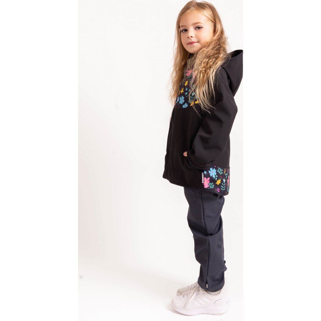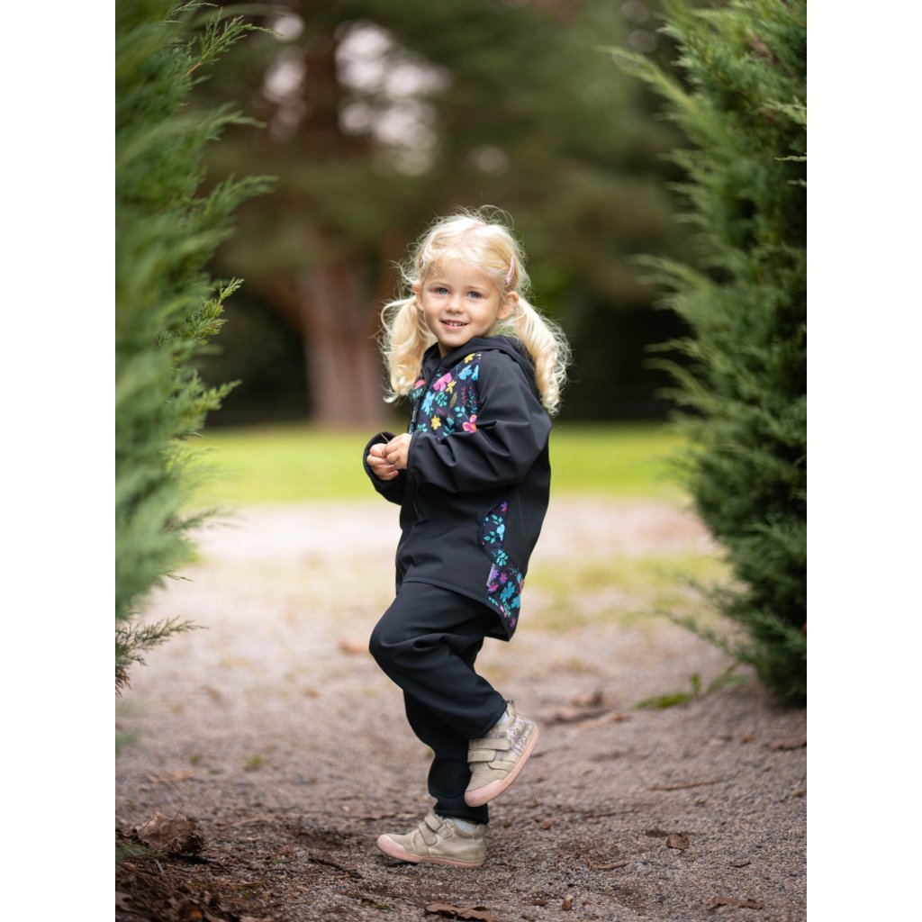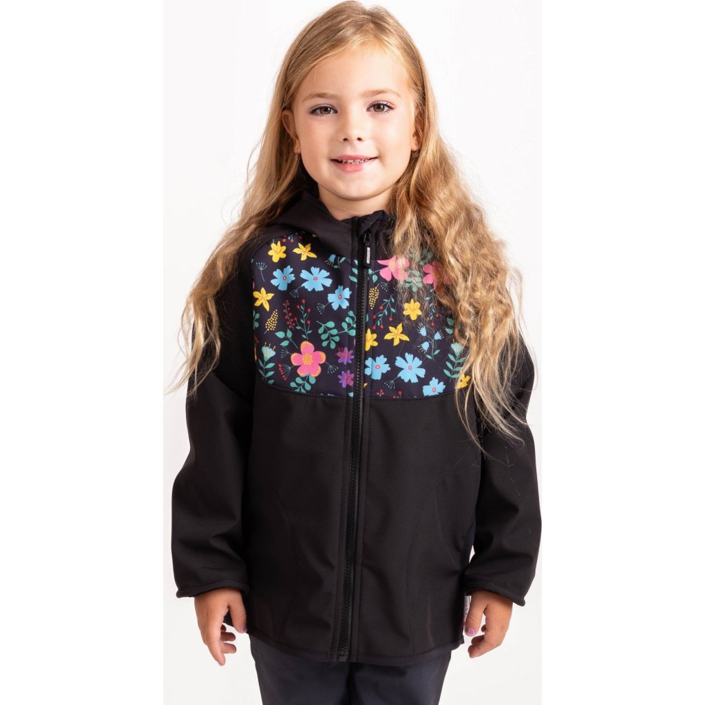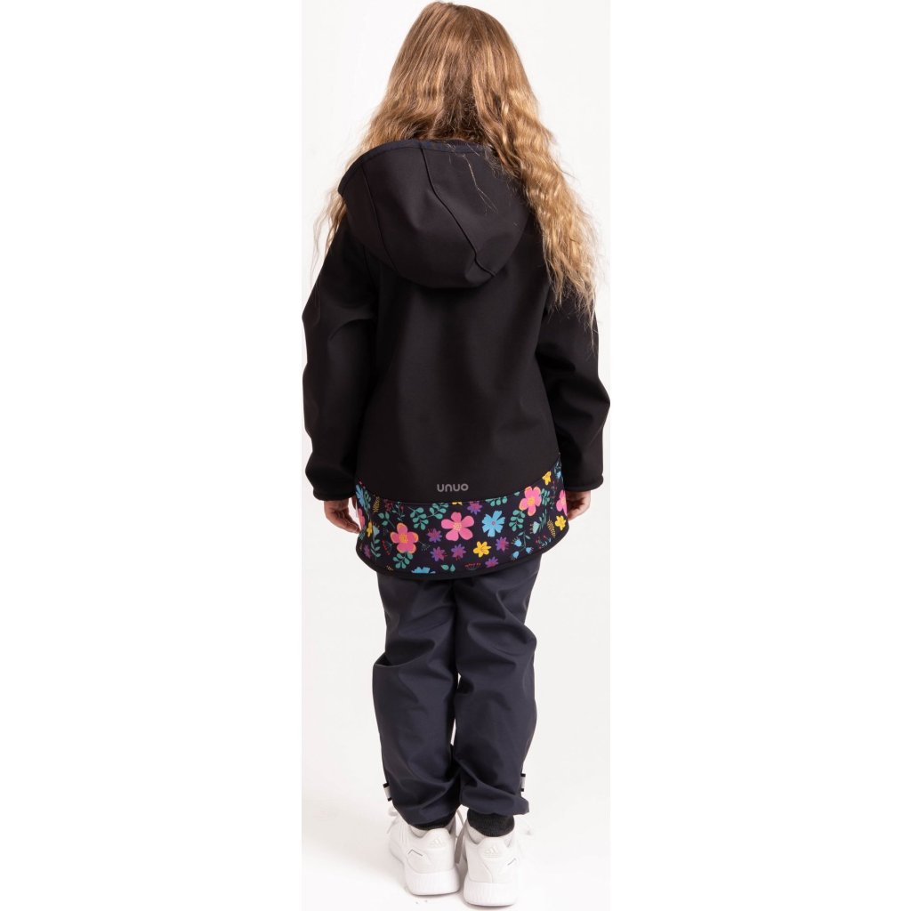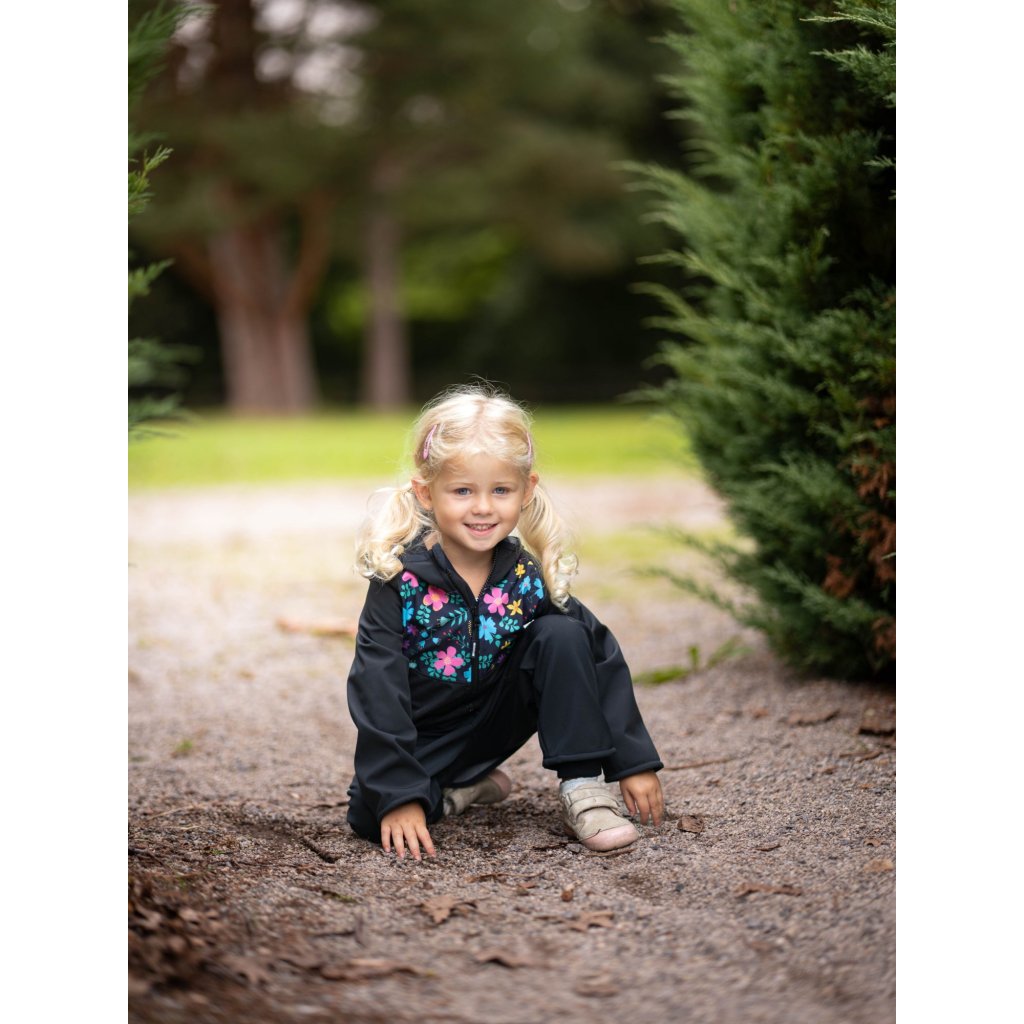 Dětská softshellová bunda UNUO s fleecem Basic, Černá, Kytičky