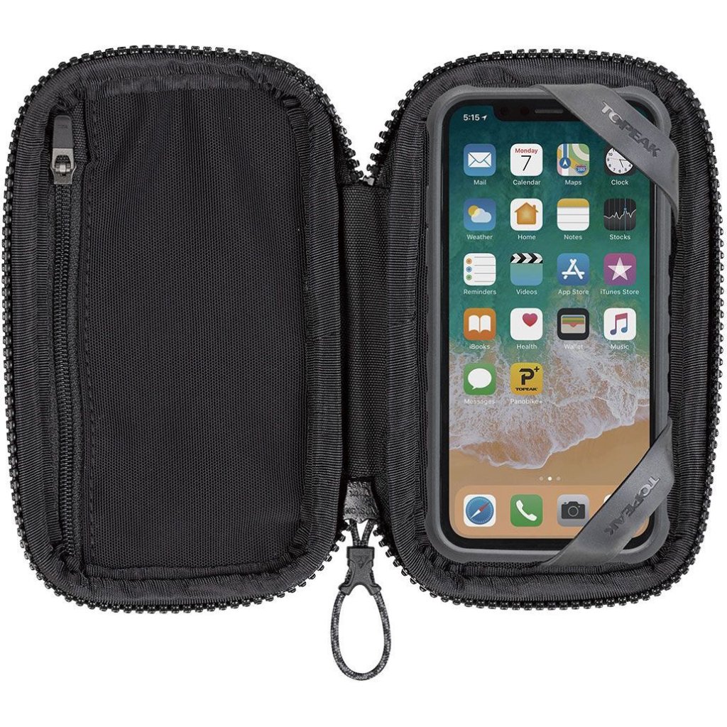 Pevná peněženka s pouzdrem na mobilní telefon. Měkká sametová vnitřní podšívka ochrání vaše věci, peněženka je kompaktní a dobře organizovaná. Je vybavena vnitřními / síťovanými kapsami na zip, takže udrží vaše kreditní karty, bankovky, mince a klíče na svém místě a usnadní přístup díky širokému otvoru na zip. Pružné silikonové pásky bezpečně udrží váš smartphone na místě, když je peněženka otevřená. Dostatečně kompaktní, aby se vešla i do kapsy dresu.