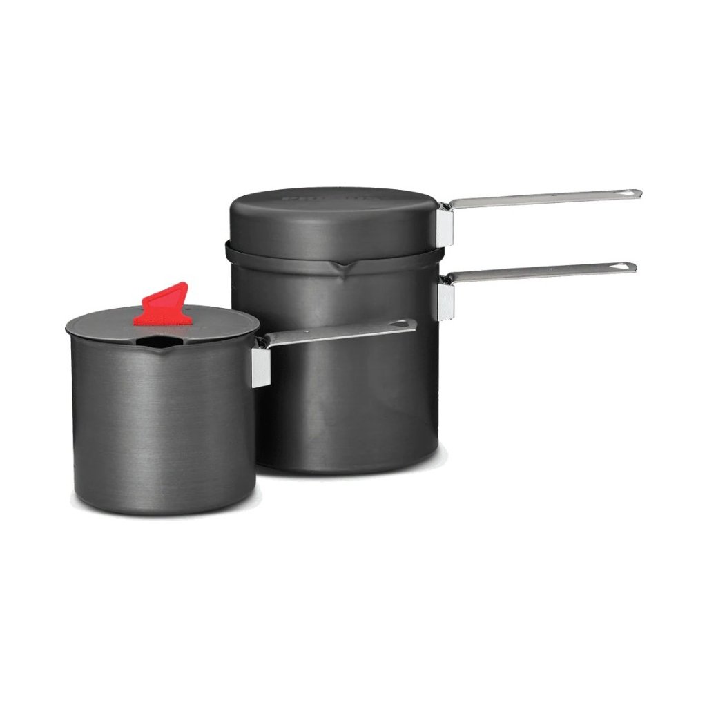 PRIMUS Trek Pot Set obsahuje dva hrnce o objemu 0,6 l a 1,0 L z tvrzeného anodizovaného hliníku s keramický povrchem pro efektivní a rychlé stravování v přírodě.