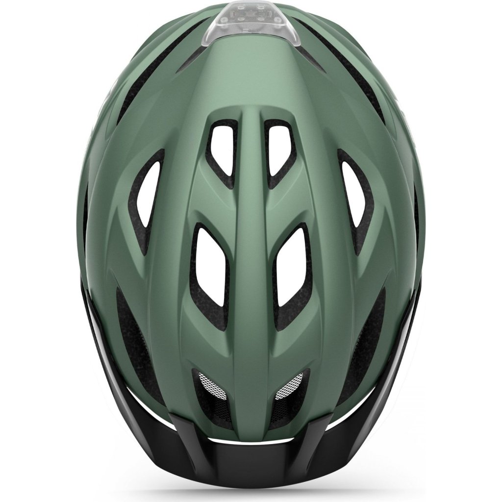S integrovaným zadním LED světlem MET Crossover zajišťuje, že je jezdec vidět a v bezpečí v noci nebo v provozu.