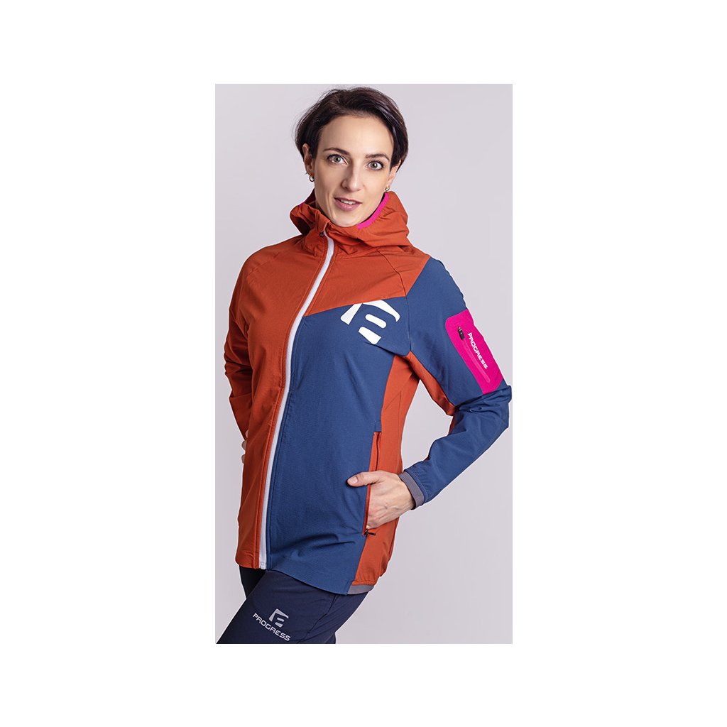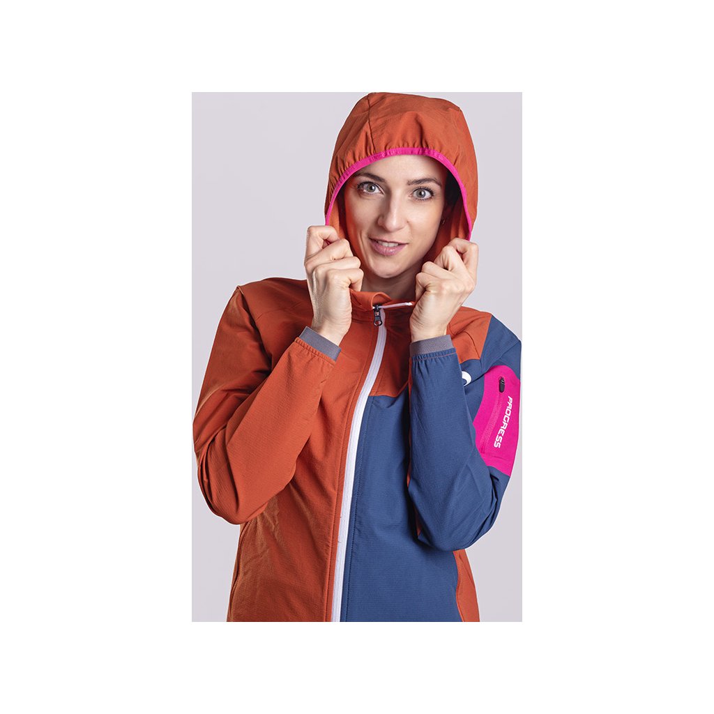 Dámská bunda s merinem PROGRESS Woolcraft Lady terakota/tm.modrá