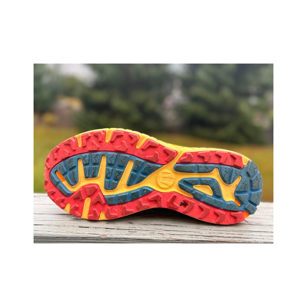 Boty na trail mají tradiční šněrování s poutkem pro snadné obouvání a zásekání na batohu.