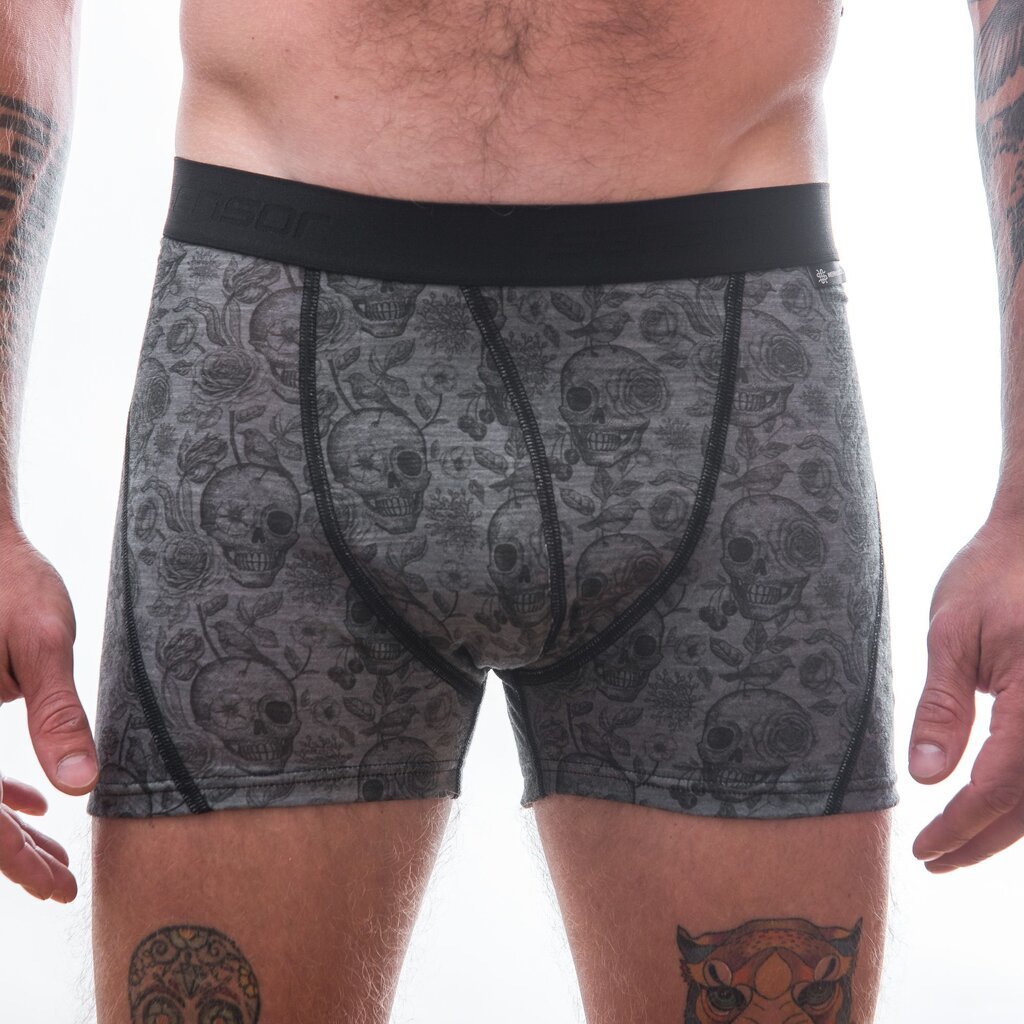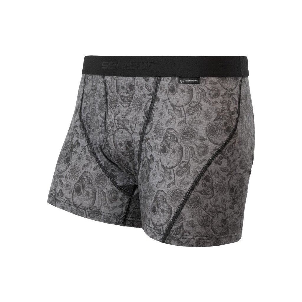 Pánské termo boxerky SENSOR Merino impress černá/skulls