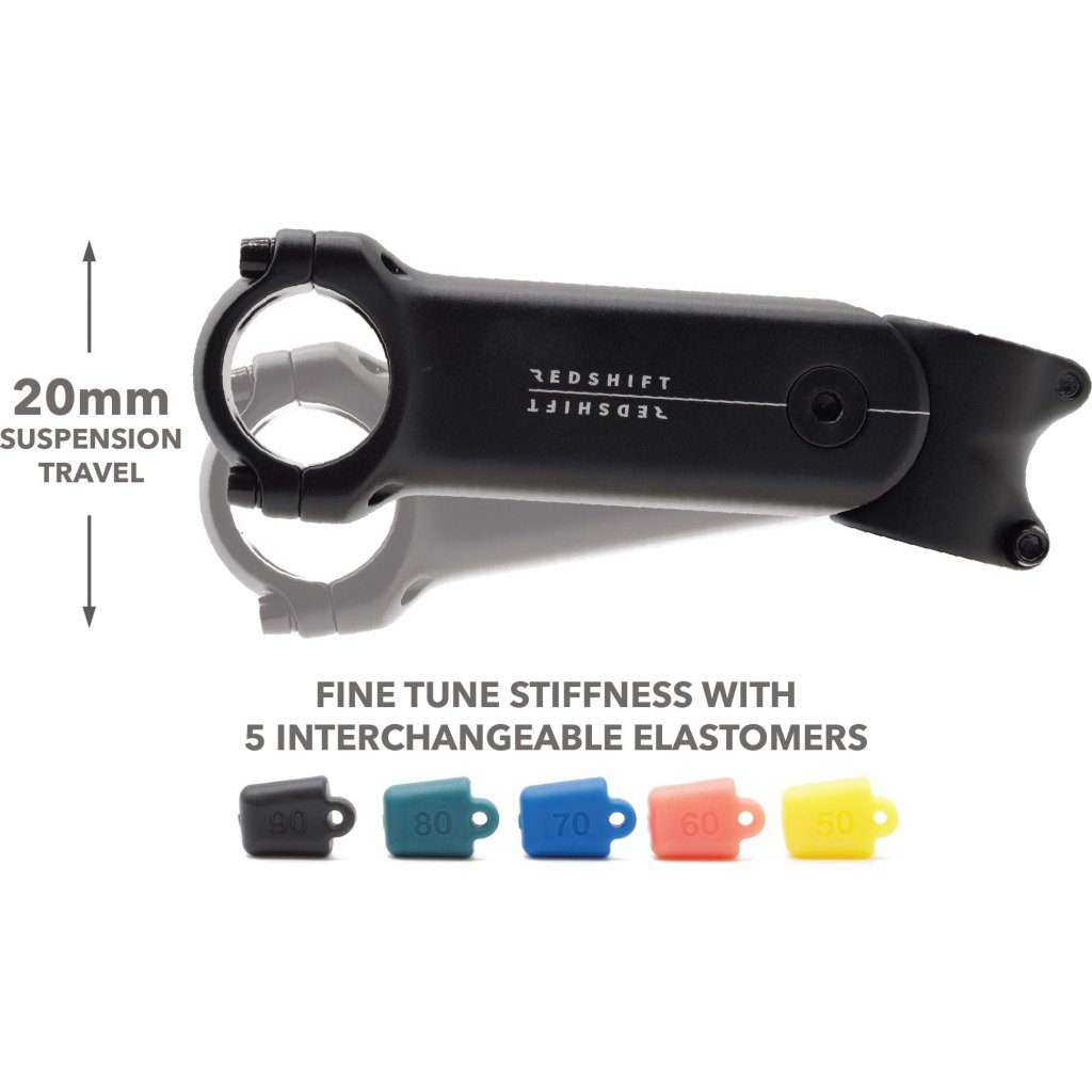 Odpružený představec Redshift je netradiční způsob jak získat na svém gravelu či fitness kole vyšší komfort. Díky integrovaným elastomerům se dá jednoduše nastavit požadovaná tvrdost. Představec je určený pro zahnutá i rovná řidítka o průměru 31.8 a sloupky vidlic 1 1/8.