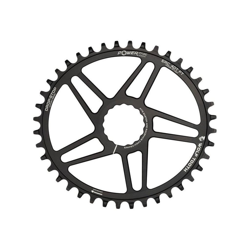 - Patentovaný široký/úzký profil zubů Drop-Stop® od Wolf Tooth pro maximální udržení řetězu a schopnost odplavování bláta