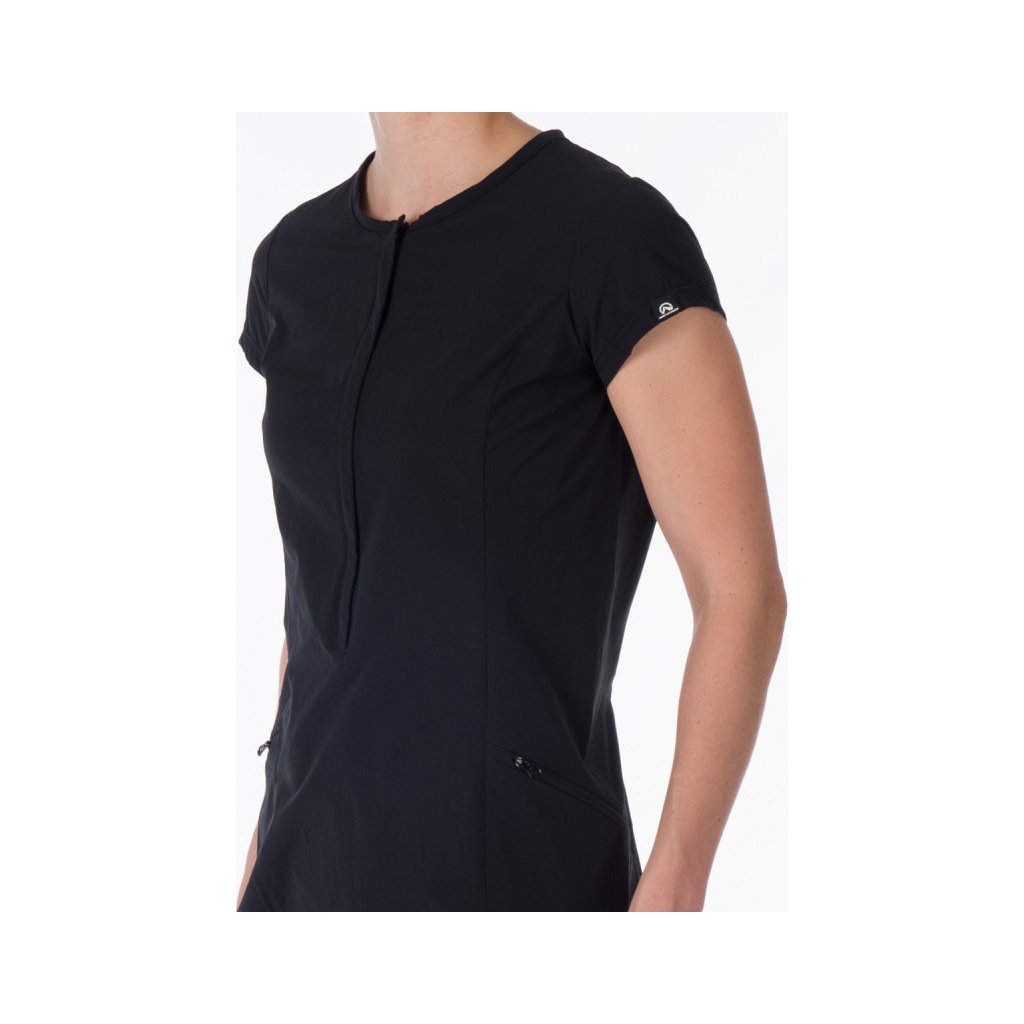 Lehké a vysoce strečové funkční šaty z oděruodolného materiálu pro lehkou turistiku, aktivní volný čas, ale i speedhiking. Oceníte je zkrátka vždy tehdy, když se budete chtít cítit chic a žensky. Šaty disponují dvěma předními kapsami na zip, předním zipem s légou a nařasením v zadní části.