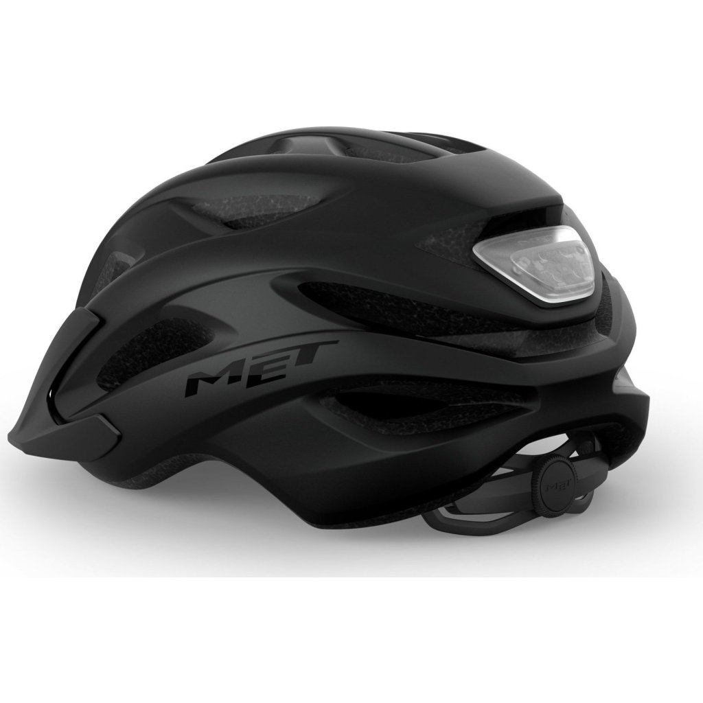 S integrovaným zadním LED světlem MET Crossover zajišťuje, že je jezdec vidět a v bezpečí v noci nebo v provozu.