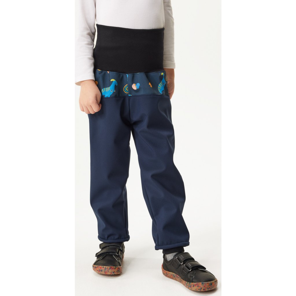 Batolecí softshellové kalhoty UNUO s fleecem Basic, Tm. Modročerná, Dinosauři