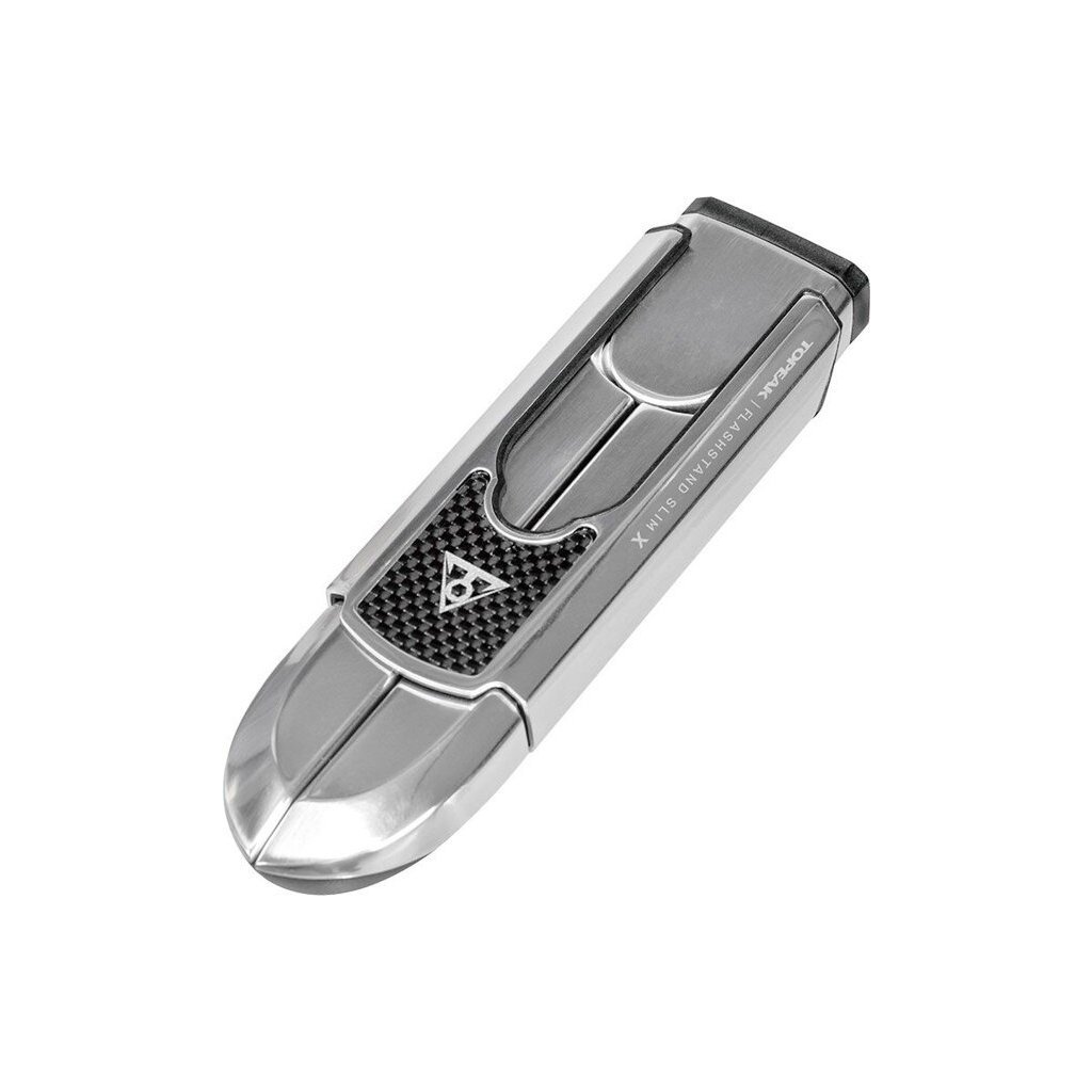 Vylepšená verze stojanu na kolo využívající k upevnění kliku kola. Snadno použitelný a přenosný. Vhodný pro silniční kola 700c s rozměrem klikového ramene ≤ 41 x 16 x 80 mm (ŠxHxV). Po složení se FlashStand® Slim X snadno vejde do kapsy na dres nebo do sedlové tašky.