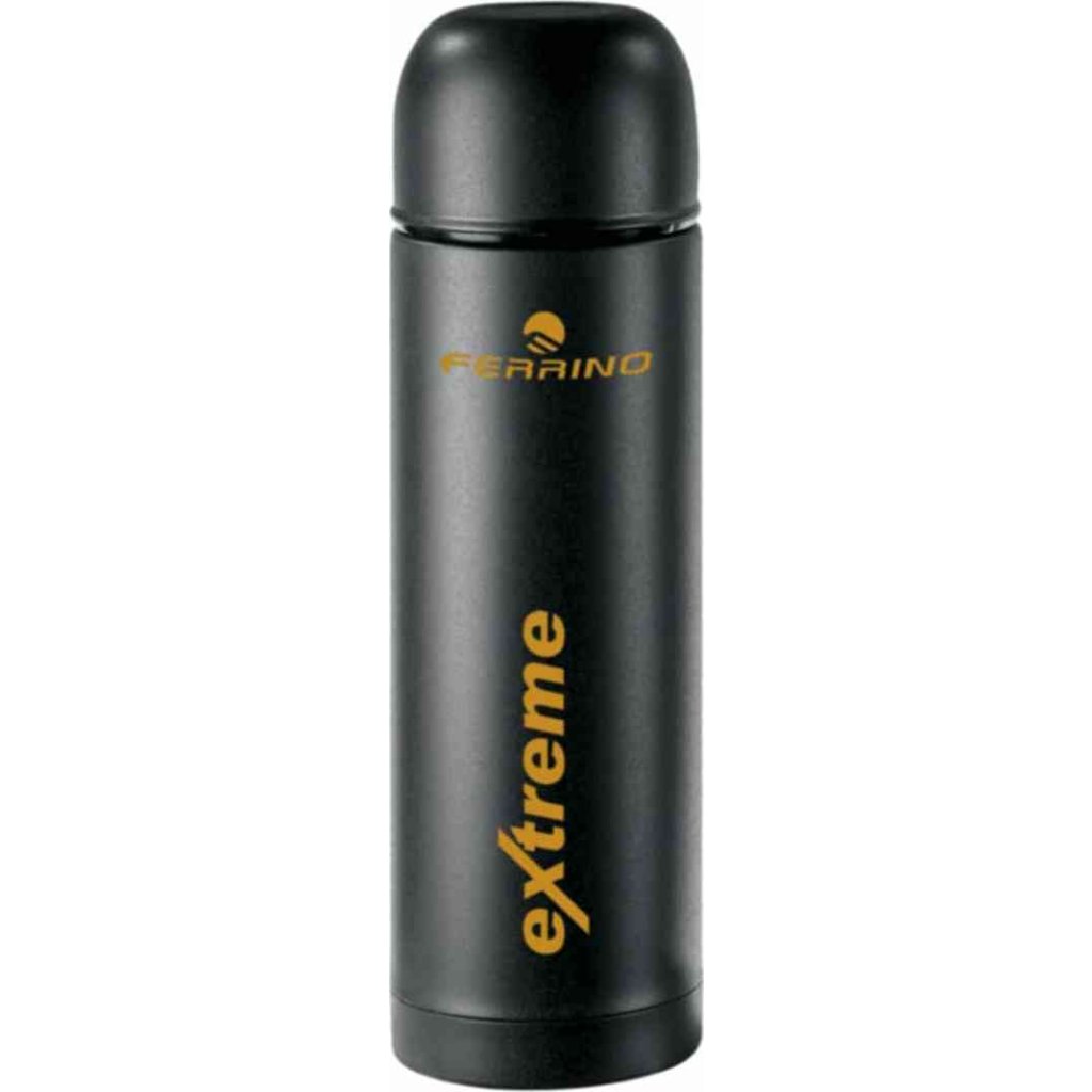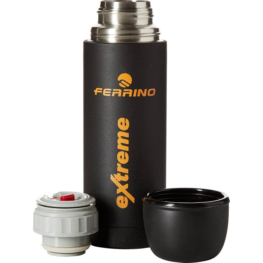 Ferrino Thermos Extreme je kvalitní termoska vyrobená z nerezové oceli s vakuovou izolací a 100% těsnícím uzávěrem v každé poloze. Svrchní šroubovací víčko lze využít jako hrneček na pití. Vnitřní uzávěr se otvírá jednoduchým posunutím pojistky do strany, což má za výhodu velmi rychlé a snadné ovládání i v zimních rukavicích. Termoska má lehce zdrsněný protiskluzový povrch což snižuje riziko vyklouznutí termosky z ruky.