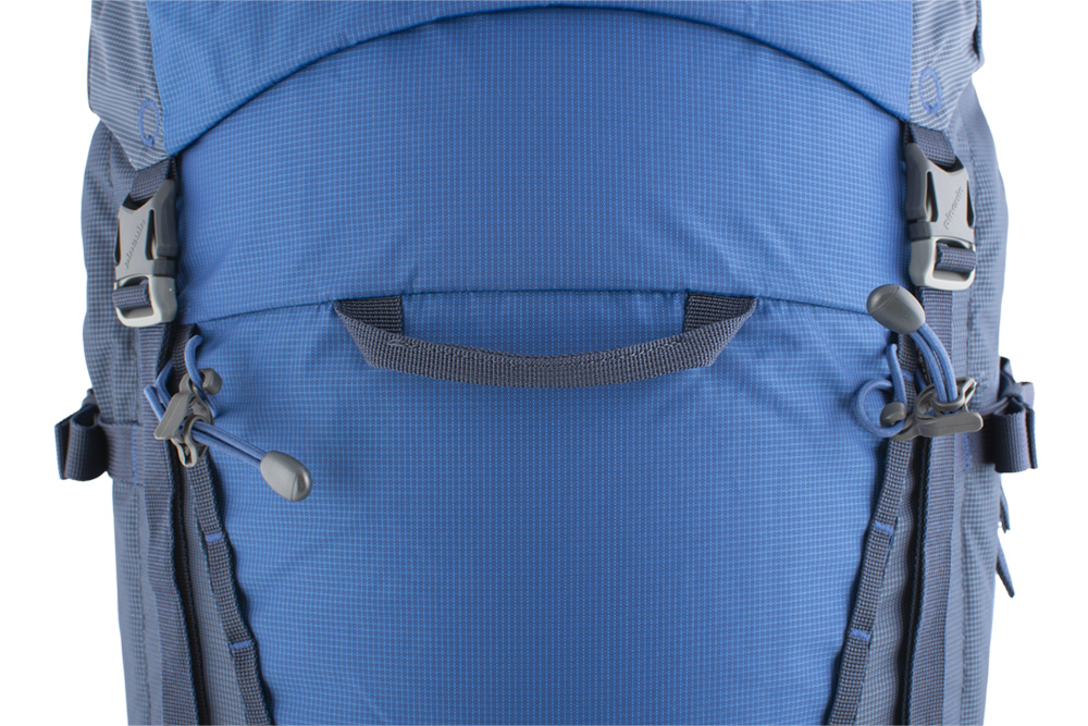 Boční shora otevřené kapsy z pevného materiálu pro transport lahve a dalšího rychle dostupného vybavení. Pružná poutka s háčky na připevnění teleskopických holí nebo cepínů a poutka na dně batohu.