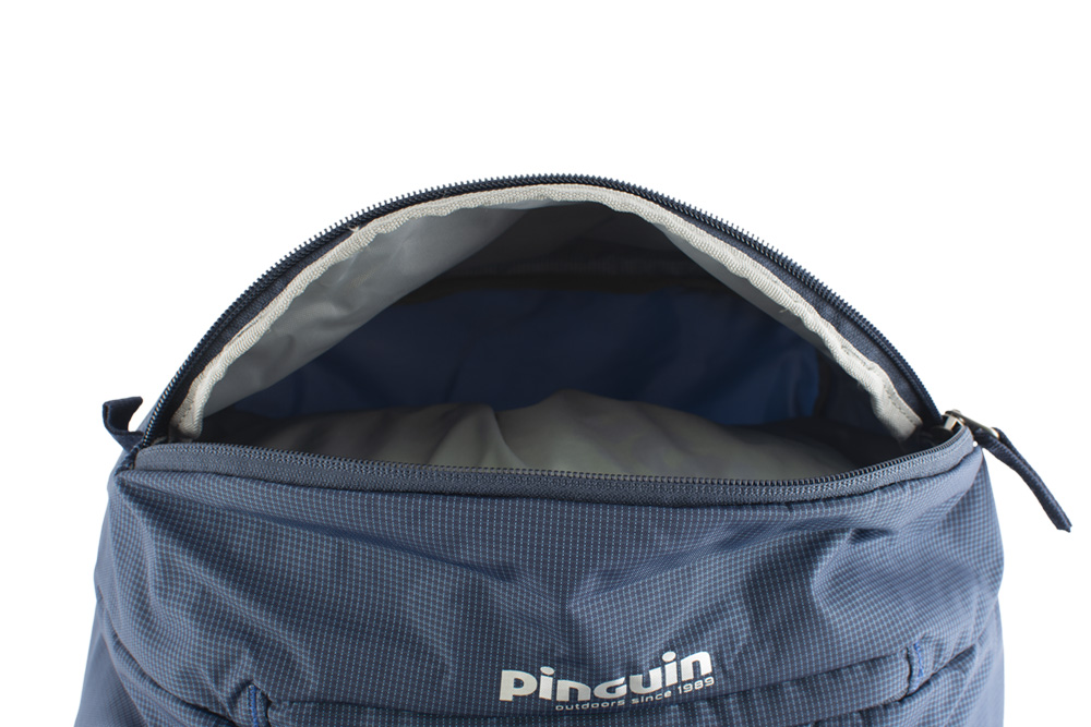 Síťovaná zipová kapsa na vnitřní straně víka na cennosti s karabinkou na klíče. Středový kompresní popruh pod víkem.