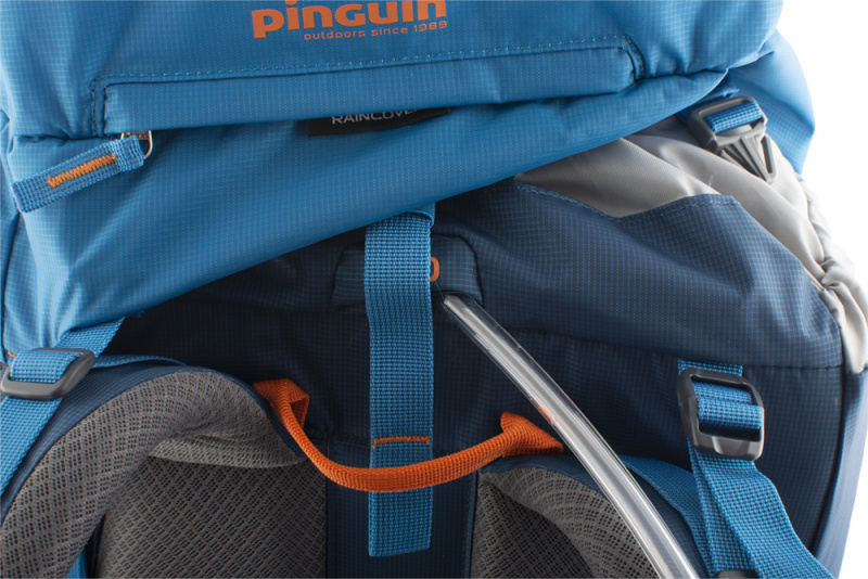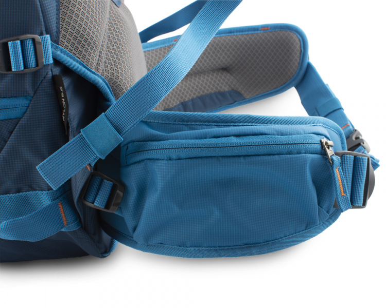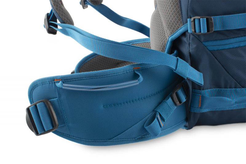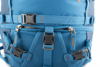 Výškově nastavitelný a odepínatelný hrudní popruh s píšťalkou pro případ nouze. Boční zipový vstup do batohu jištěný popruhem = snadný přístup k lahvi, rukavicím či bundě. Zipová kapsa na pravé straně bederního pásu. Poutko na karabiny nebo lyžařské mačky na jeho levé straně. Propojení bočních kompresních popruhů s čelním v jeden souvislý popruh přispívá k možnosti dokonalého stažení batohu a přitažení nákladu k zádovému systému a podporuje pohyblivost při chůzi s naloženým batohem. Odepínatelný bederní pás pomáhá efektivně rozložit hmotnost přenášeného nákladu mezi boky a záda.