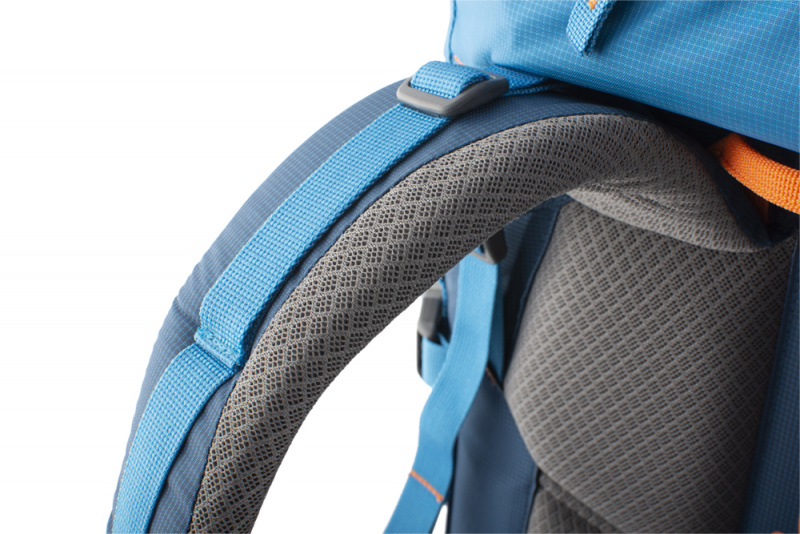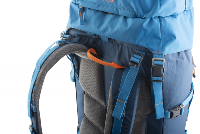 Pevné ramenní popruhy se zesíleným polstrováním pro zachování komfortu i při transportu těžkého nákladu. Výstup na hadici vodního vaku mezi ramenními popruhy. Balanční popruhy v horní části ramenních popruhů a na bocích bederního pásu pro dokonalé usazení batohu na zádech a eliminaci jeho pohybu při chůzi. Záda batohu jsou vyztužena vyjímatelnou HDPE deskou s integrovanou duralovou výztuží, která pomáhá rozložit hmotnost přepravovaného nákladu na záda a eliminuje tlaky přepravovaných předmětů do zad. Pohodlný, šitý zádový systém s polštářky potaženými 3D mesh prodyšnou textilií zajišťuje efektivní odvětrání zad při zachování optimálního rozložení nákladu.