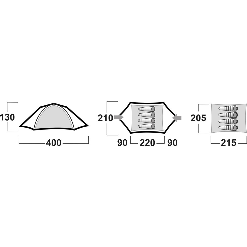 | Konstrukce: | dvouplášťový samonosný stan s vnitřní konstrukcí |